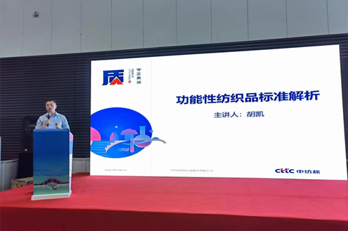 展会期间,英国365集团公司浙江公司总经理助理胡凯在中国(绍兴)功能性纺织品论坛上做了“功能性纺织品标准解析”的主题发言。胡凯从功能性纺织品标准体系,功能性服装产品标准的选择,功能性纺织品标准发展趋势等三个方面做了专业分享。同时,参展团队积极推广检测项目及公司业务,详细解答展位垂询企业的相关咨询,针对意向合作企业进行一对一重点商谈,进一步明确合作方向,并邀请企业代表来公司实地参观交流。