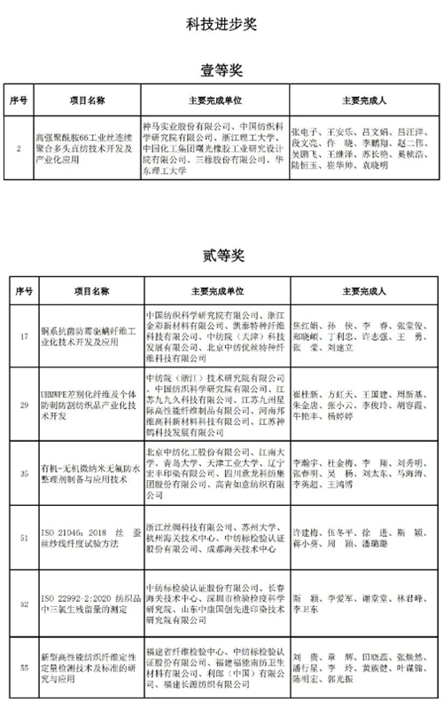 获奖单位:神马实业股份有限公司、中国纺织科学研究院有限公司、浙江理工大学、中国化工集团曙光橡胶工业研究设计院有限公司、三橡股份有限公司、华东理工大学