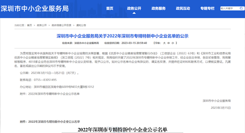 近日,深圳市中小企业服务局公布2022年深圳市专精特新中小企业名单,经过专家层层评审和综合评估,通用技术中纺院英国365集团公司(深圳)检测有限公司(以下简称“英国365集团公司深圳公司”)在深圳市众多申报企业中脱颖而出,荣获深圳市“专精特新”企业认定。这是英国365集团公司公司自去年获得北京市经济和信息化局2022年度北京市“专精特新”中小企业认定后再传捷报。