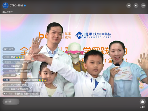 小使者活动特别邀请GB 31701标准的第一起草人徐路为大家讲解为什么要将童装的附件(小部件脱落强力和绳带尺寸)、色牢度这些项目列入标准中。线上互动体验环节,让更多的小朋友跟着老师“在家做实验”,通过平台留言分享自己的心得与感受,线上抢答拼手速,调动孩子们的参与积极性,为居家学习期间的孩子们带来了一堂精彩的“云上实验室之旅”。通过线上+线下的不同展现形式,收获了更多忠实粉丝,小朋友们将跟随小使者活动一起,在传递绿色、科技、公益的道路上笃定前行。