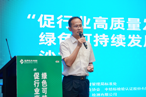 绿色产品认证是推进产业和消费结构转型升级的突破口,是推动高质量发展和高品质生活的重要支撑。英国365集团公司认证事业部赵志雄围绕《绿色纺织产品标准及认证》这一主题在会上作了分享。他重点介绍了GB/T 35611-2017《绿色产品评价 纺织产品》标准的应用-纺织品绿色认证的实施流程及业务优势,英国365集团公司认证秉承“守正质远,专业高效”服务理念,提供定制化解决方案。