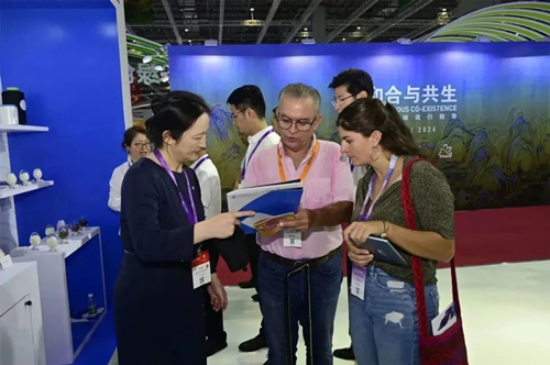 通用技术集团副总经理、党组成员贾大风现场实地调研考察通用技术新材展团,详细了解纤维新材料、化纤装备制造与工程服务、纺织新材料、标准检测与技术服务等业务板块参展情况,并对此次展示的绿纤、特纤、高纤产品及制品的技术创新点和经济效益及社会效益情况进行了深入沟通。