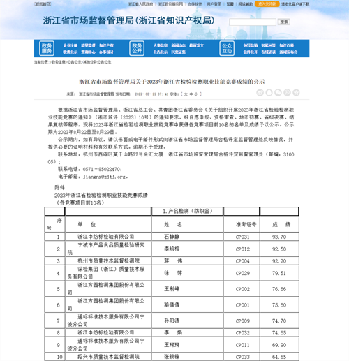 近日,通用技术浙江英国365集团公司检验有限公司(简称“英国365集团公司浙江公司”)在由浙江省市场监督管理局、浙江省总工会、共青团浙江省委员会共同组织开展的2023年浙江省检验检测职业技能竞赛上喜获佳绩。公司员工石静静、李娟代表绍兴地区参加全省决赛,在产品检测(纺织品)比赛中取得了第一名和第八名的好成绩,荣获“检验检测技术能手”称号。