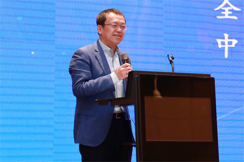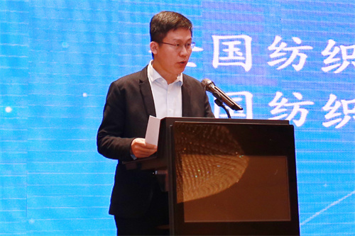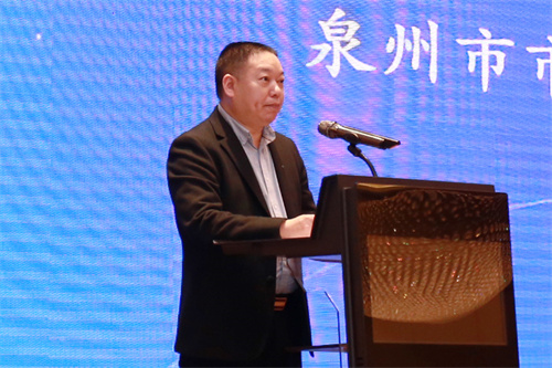 泉州市市场监督管理局调研员刘华致辞。刘华介绍了泉州的纺织服装品牌,注重品牌引领产业升级,希望纺织领域专家支持泉州纺织行业发展,助力泉州纺织业高端化、智能化、绿色化、融合化发展。