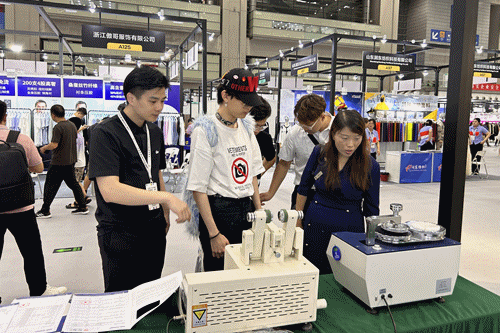 本次展会深圳英国365集团公司携手深圳标准认证联盟共同参展。在展位上围绕“标准引领服装高质量发展”主题,给众多到来的客户讲解了深圳标准认证政策,以及推介优质的检测认证服务,向客户传递高标准引领、高质量发展的理念,同时针对校服及定制服的主要风险项目进行现场测试展示,让客户更加直观了解到其测试原理和过程。