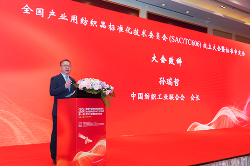 孙瑞哲致辞指出,标准是创新风向标,是合作连通器,是市场通行证,是产业话语权。我国纺织工业已建成纺织品、纺织机械与附件、服装、家用纺织品、丝绸、化学纤维、产业用纺织品等7个全国标准化技术委员会(TC)和18个分技术委员会(SC),纺织行业现有国家标准890项,行业标准1888项,初步形成了涵盖纤维原料、加工装备和三大终端应用领域的标准化技术组织和较为完整的标准体系,标准化工作发挥了基础性、支撑性和引领性作用。产业用纺织品是国家战略性新兴产业的重要组成,是纺织行业发展新质生产力的关键领域。但在科技创新和标准引领等方面,仍需进一步形成国际竞争新优势。TC606标委会的成立,将是产业用纺织品行业通过标准引领发展新质生产力的重要里程碑。他提出,标委会要挺膺担当,以标准引领高质量发展。一要有系统性,全局谋划;二要有前瞻性,与时俱进;三要有全球性,开放合作;以高标准牵引高质量发展。