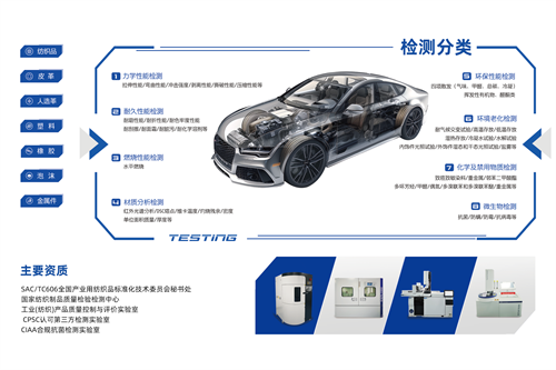 浙江英国365集团公司凭借卓越实力获得上汽大众材料实验室认可证书,可对汽车内饰材料力学性能、耐久性能、材质分析、环境老化、化学及禁用物质、车内空气质量、微生物等80余项实验进行检测,全面覆盖汽车材料多维度检测需求。
