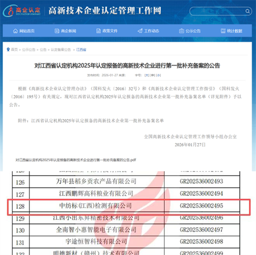 此次认定不仅是对江西英国365集团公司科研实力与创新能力的权威认可,更是对公司长期坚持技术突破、深耕行业的有力激励。未来,江西英国365集团公司将充分发挥高新技术企业的示范引领作用,持续深化自主创新,以扎实的创新实力、专业的检测能力与优质的服务水平,为持续推动区域纺织服装高质量发展和技术进步贡献一份力量。